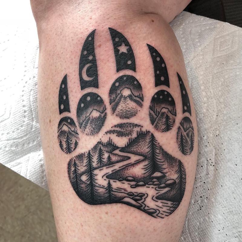 The calf offers a wide expanse of skin that serves as a good canvas that tattoo artists can work on. Bear paw tattoos on the calf are popular with men, but they’re gaining popularity among women, especially athletes. They are intricate and tend to tell a deeper emotional story about the person wearing them. A bear paw tattoo on the calf implies commitment and bravery.