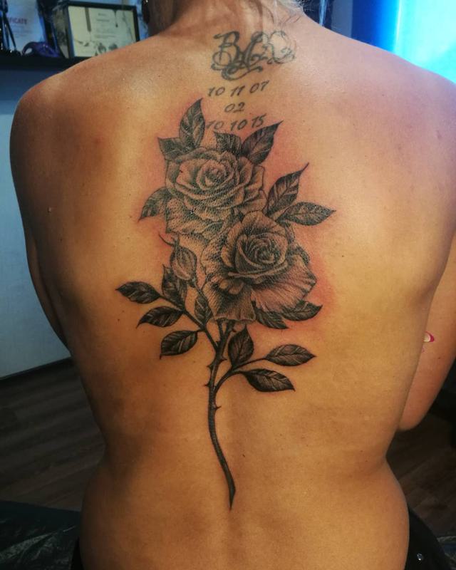 You can decorate your back using a black rose tattoo. This tattoo allows you to ink it from the top and down to your waist. Here, there’s much space and freedom to create any tattoo style. You’ll also be able to hide where tattoos aren’t legal. But once you show it off where it’s allowed, be ready to move masses.