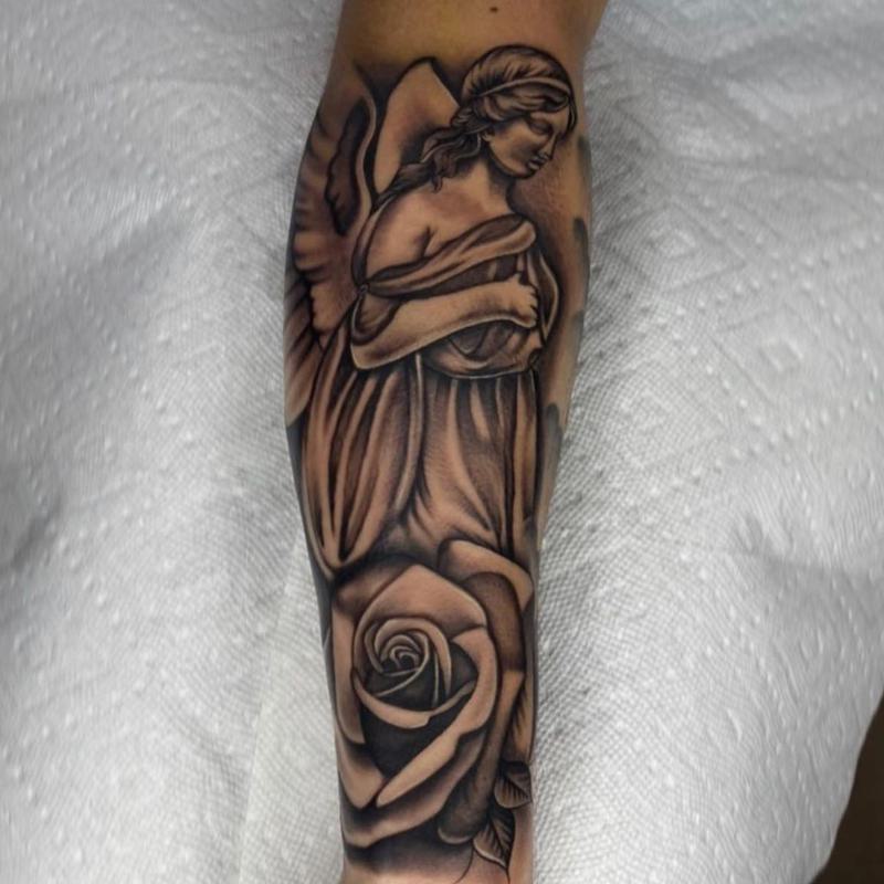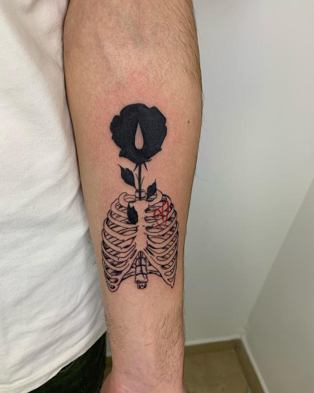 Let your forearm show off your love for the rose flower using pure black ink. This body is the best if you want always to show off your tattoo to the public.
