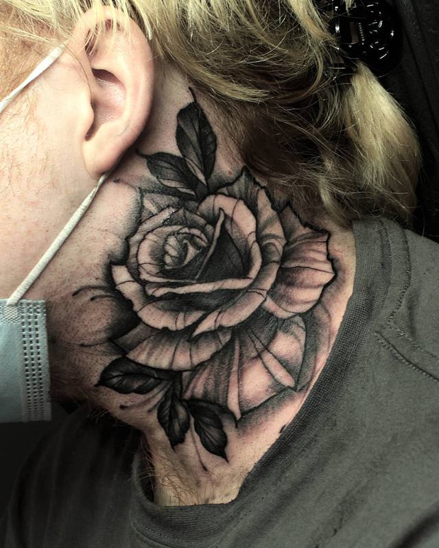 Black rose neck tattoos need much detail, so they can be painful to place on your body. Choose it if you have a strong heart.